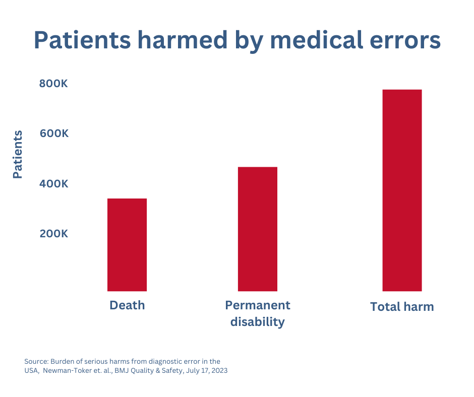 An alarming 2023 analysis by Johns Hopkins University found almost 800,000 Americans are killed or permanently disabled each year due to medical errors.